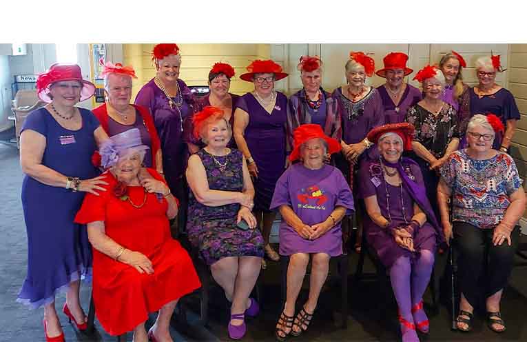 The Champagne Charlies are the local chapter of the global Red Hat Society, a movement dedicated to women over 60 embracing life, laughter and colour, all while proudly wearing red hats and purple attire.
