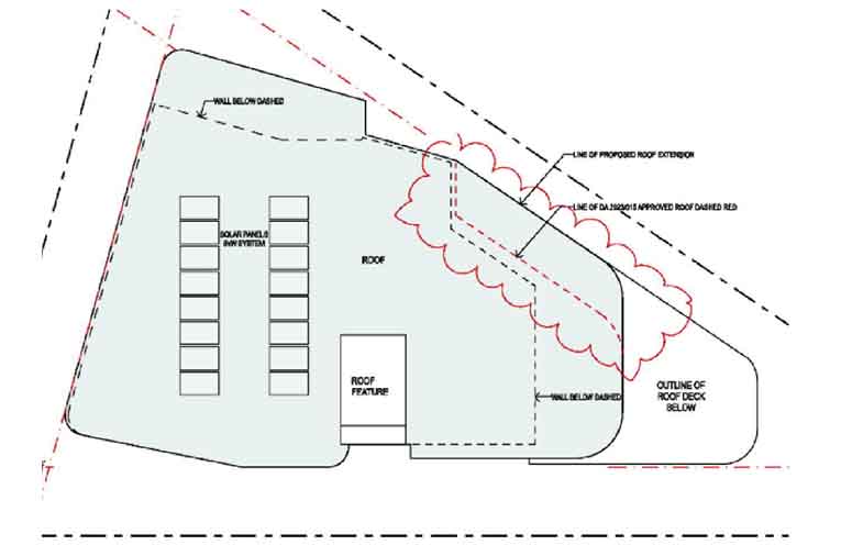 “The modification (of 2m x 9m) seeks to extend the roof line to provide better weather protection to the balcony of apartment five on the top floor,” stated Senior Town Planner Michael Coulter in his request on behalf of the developers.