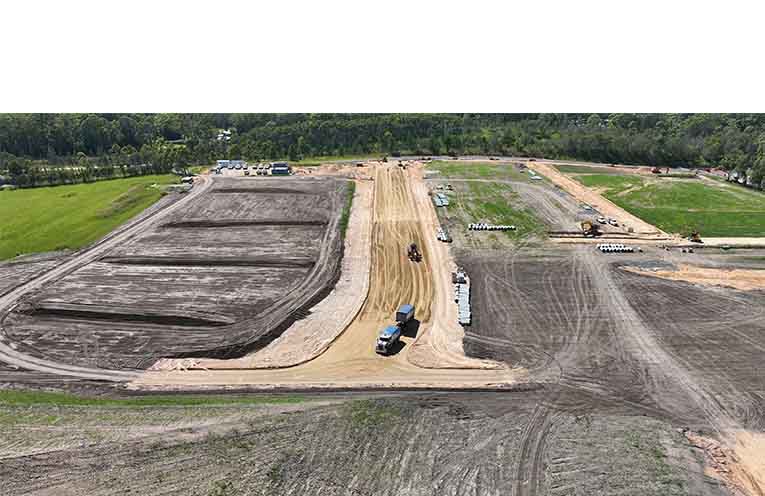 To date, around 2,800 tonnes of road base have been delivered by truck and trailer and spread by grader across the site as the subdivision begins to take shape.