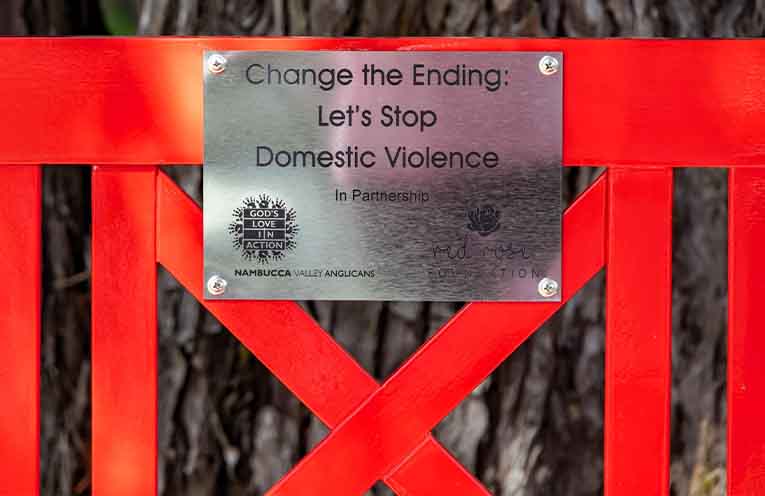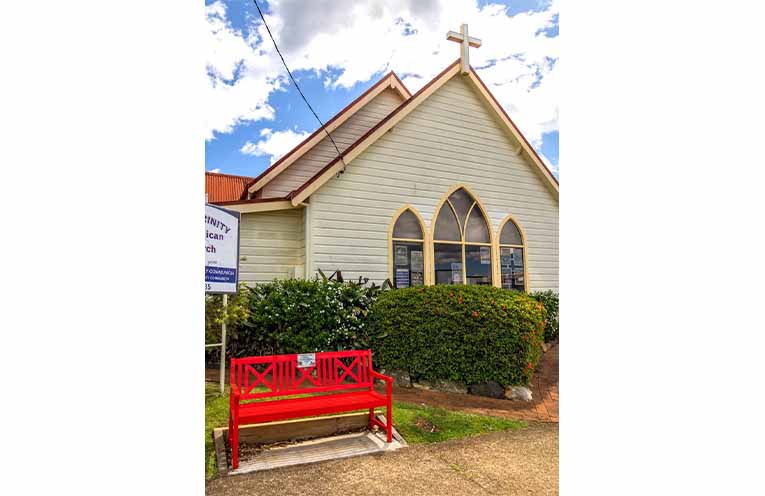 Red benches are installed at each of the Anglican Church’s four local worship centres: Holy Trinity, Macksville; St John’s, Nambucca Heads; St James, Bowraville; and All Saints, Stuarts Point.