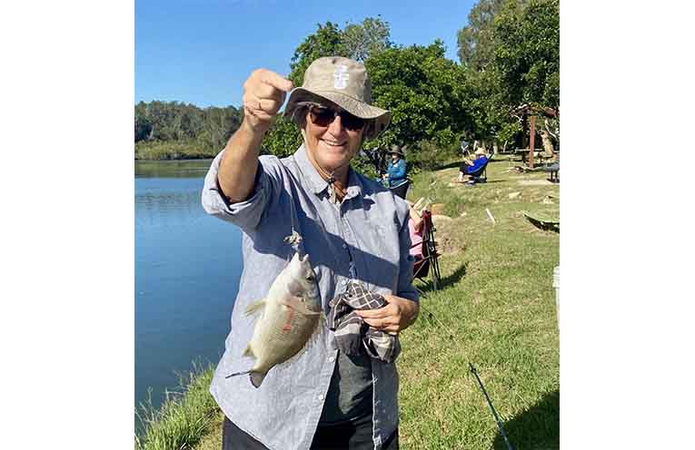 A school of mullet constantly swam back and forth near the riverbank “taunting” us at Gumma Reserve recently as not one mullet paused to even try our bait.